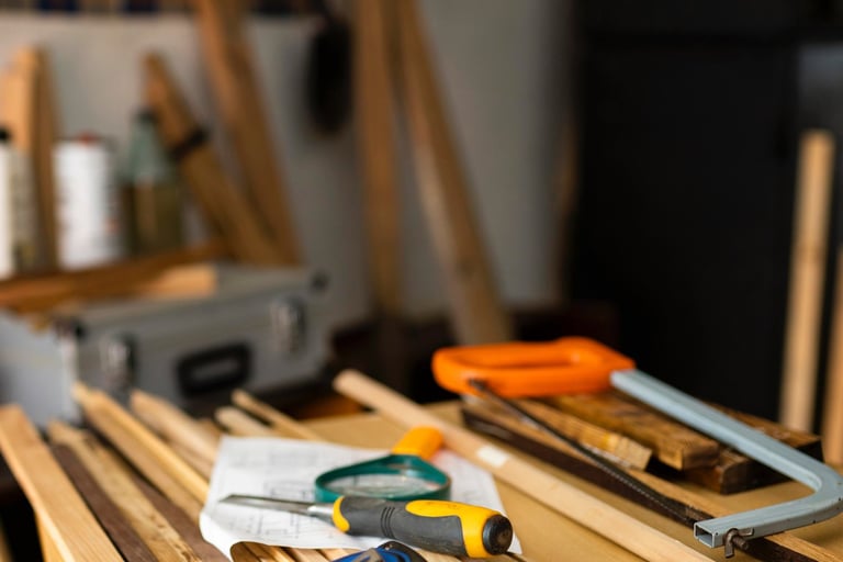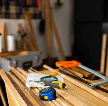 Direkt neben meinen Therapieräumen liegt unsere private, echte Werkstatt – mit Werkzeugen, Maschinen, Holz, Düften und Geräuschen, die Lust aufs Machen wecken. Dieses Umfeld inspiriert mich jeden Tag, denn es steht für das, was ich auch in meiner Arbeit lebe: